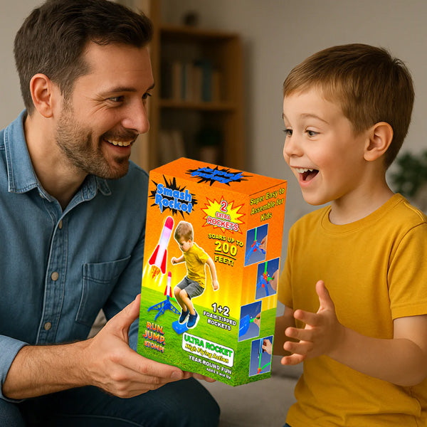 Imagina a tus pequeños corriendo, riendo y saltando mientras hacen despegar cohetes al cielo.