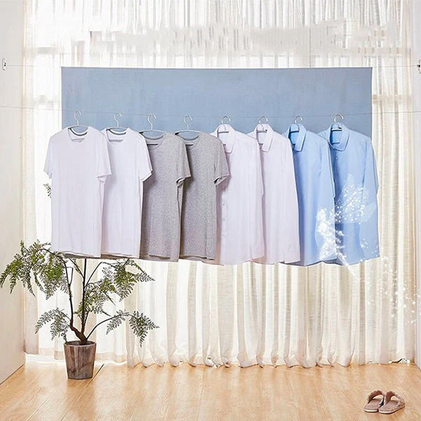 Imagina tener un tendedero discreto en tu pared, que se despliega cuando lo necesitas y se retrae cuando no lo usas, sin estorbar.